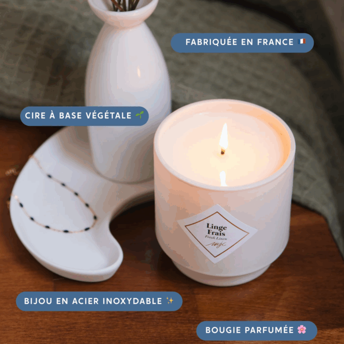 More than a candle, a fragrance, a color, My Jolie Candle has that something extra that makes every experience unique. It’s about arousing curiosity and being able to create surprise at any time. The surprise of a jewel nestled in wax, the surprise of a personalized message… all those special touches that make a moment exceptional. It is about stimulating creativity and moving while producing responsibly, while respecting the environment. Their commitment: to breathe a good dose of inventiveness and positive energy into all our creations, with an obsession for a job well done, to offer you impeccable quality. It’s simply succumbing to the delicious pleasure of letting yourself be surprised!
