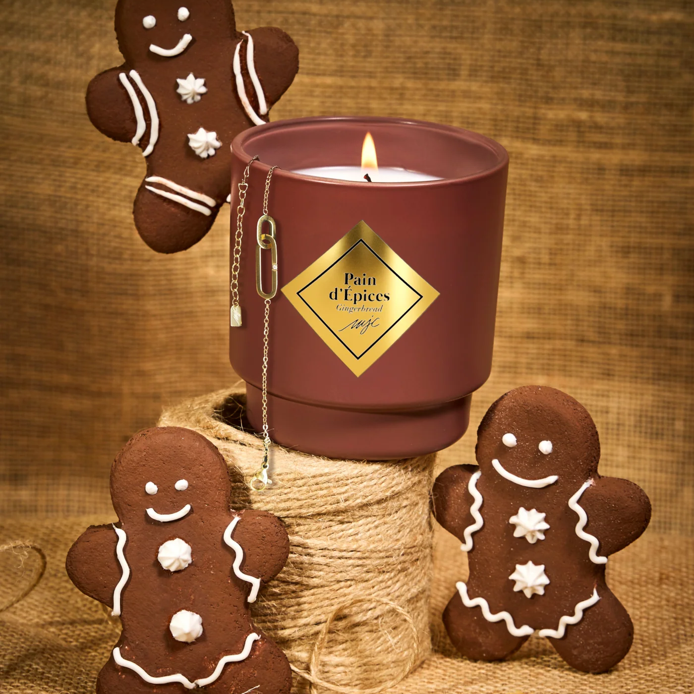 Rediscover the scent of gingerbread with this indulgent and comforting fragrance. Inside the wax, discover a gold-plated stainless steel bracelet adorned with a sparkling Swarovski crystal, for a magical gift.