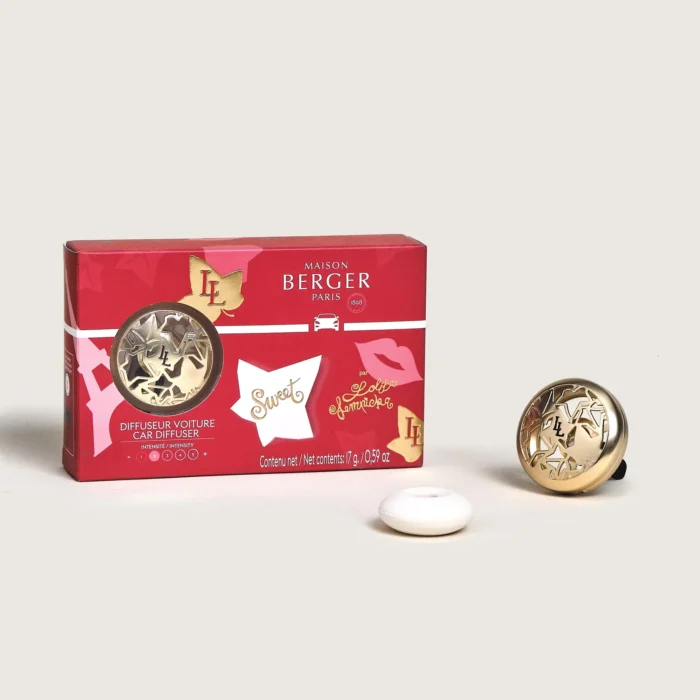 The Lolita Lempicka Sweet Car Diffuser is the continuation of the collaboration between designer Lolita Lempicka and Maison Berger Paris. This rechargeable car diffuser features a striking gold design, a truly decorative accessory for the interior.