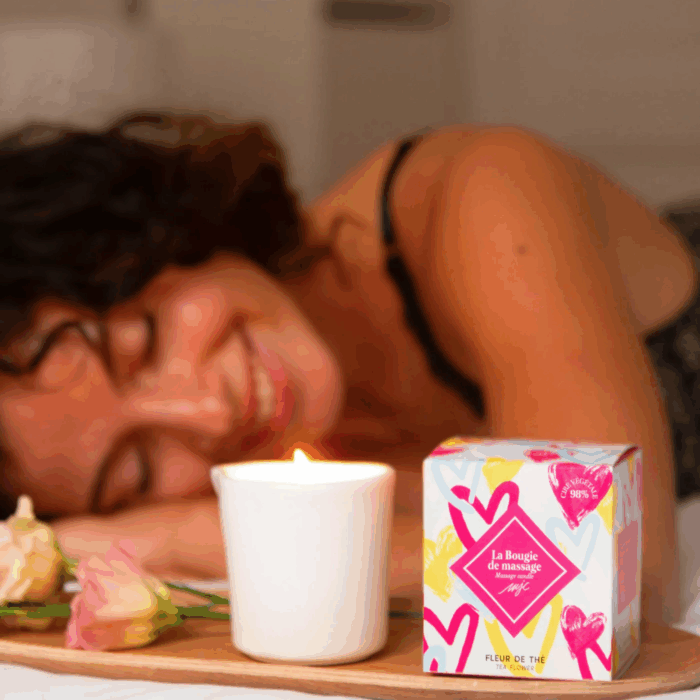 Gradually, the melted wax transforms into a warm massage oil, ideal for applying to the skin. Once lit, this candle releases a sensual, powdery fragrance blending notes of freesia, jasmine, and musk.