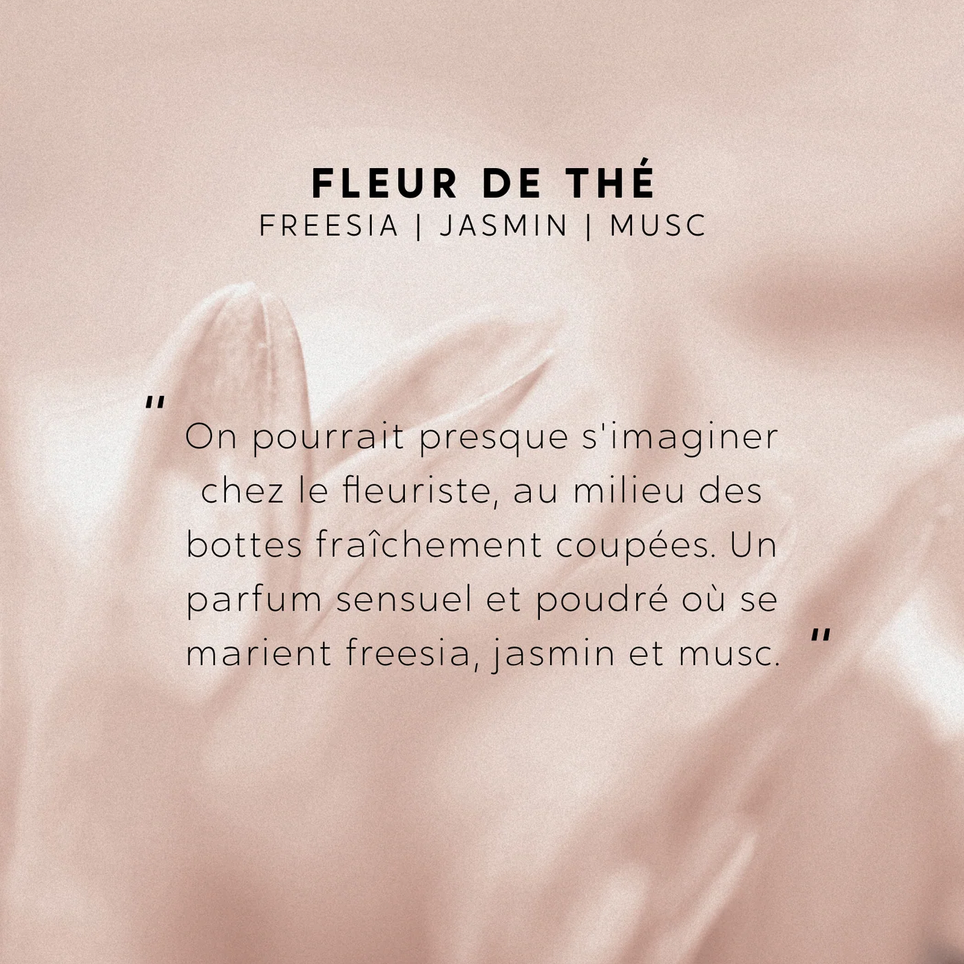 You could almost imagine yourself at the florist’s, surrounded by freshly cut bundles. Once lit, this candle releases a sensual, powdery fragrance blending freesia, jasmine, and musk.